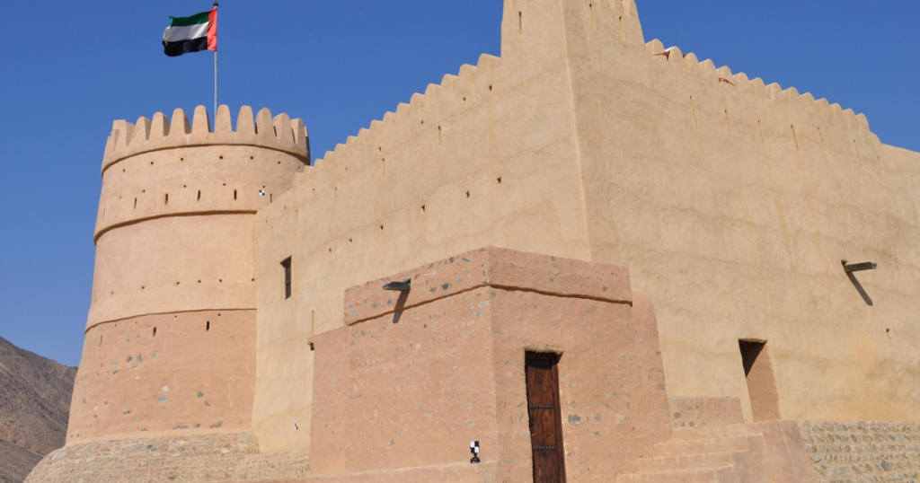 Visitors can explore 17th-century defensive walls, watchtowers, and nearby Fujairah Heritage Village.